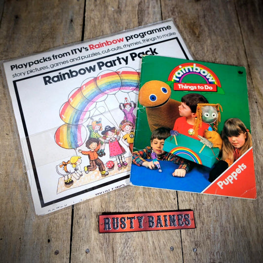 Vintage ITV Rainbow Party Pack & Things to Do Puppet Book, Cult Children's TV