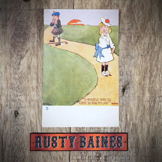 Vintage Comic Postcard, Hamish, Eager Girl, Romance, Scotsman Whistle